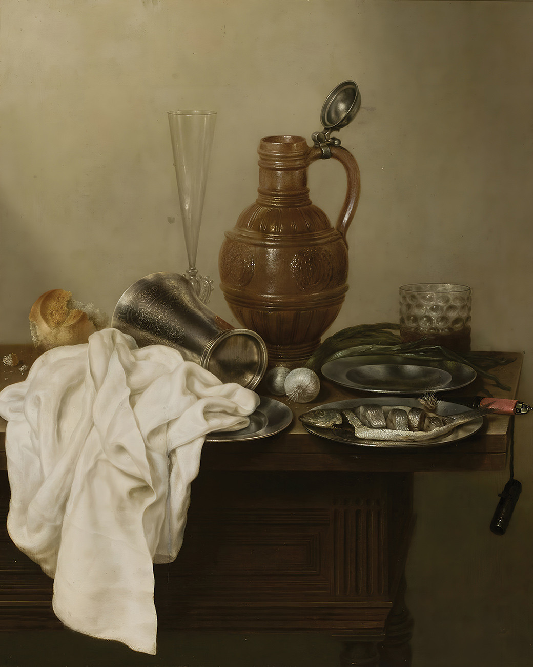 ₴ Репродукція натюрморт "Натюрморт з керамічним глечиком і оселедцем" - Хеда Герріт Віллемс