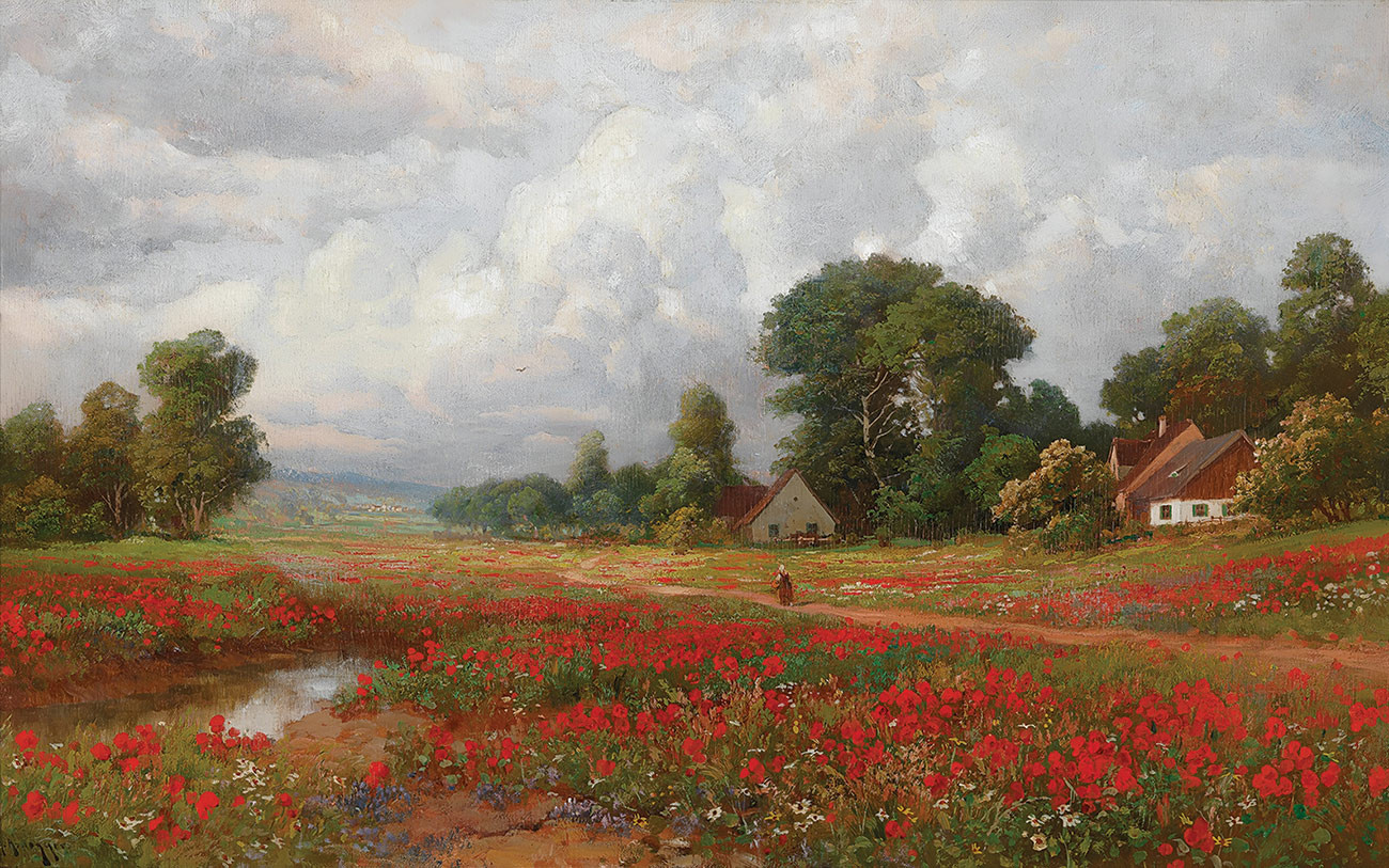 репродукция пейзажа известного художника Арнегера Алоиса — "Поле маков"