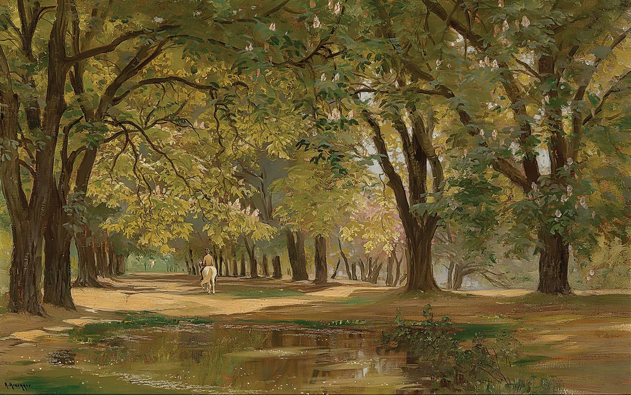 репродукция пейзажа известного художника Арнегера Алоиса — "Езда верхом вдоль Пратерской главной ярмарочной аллеи"