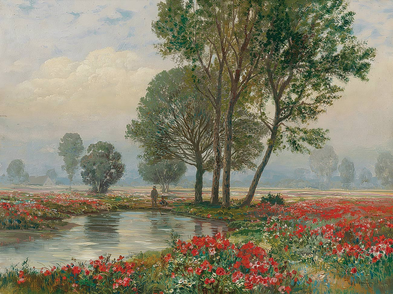₴ Репродукция пейзажа известного художника "Летний пейзаж" - Арнегер Алоис