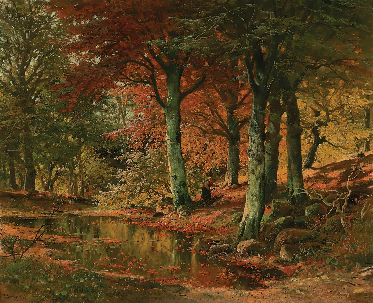 репродукция пейзажа известного художника Арнегера Алоиса — "Лесной пейзаж осенью"