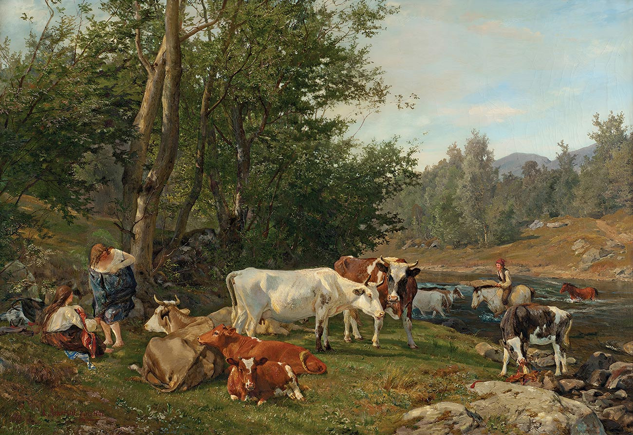 репродукция пейзажа художника Аскеволда Андерса — "Ландшафт со скотом"
