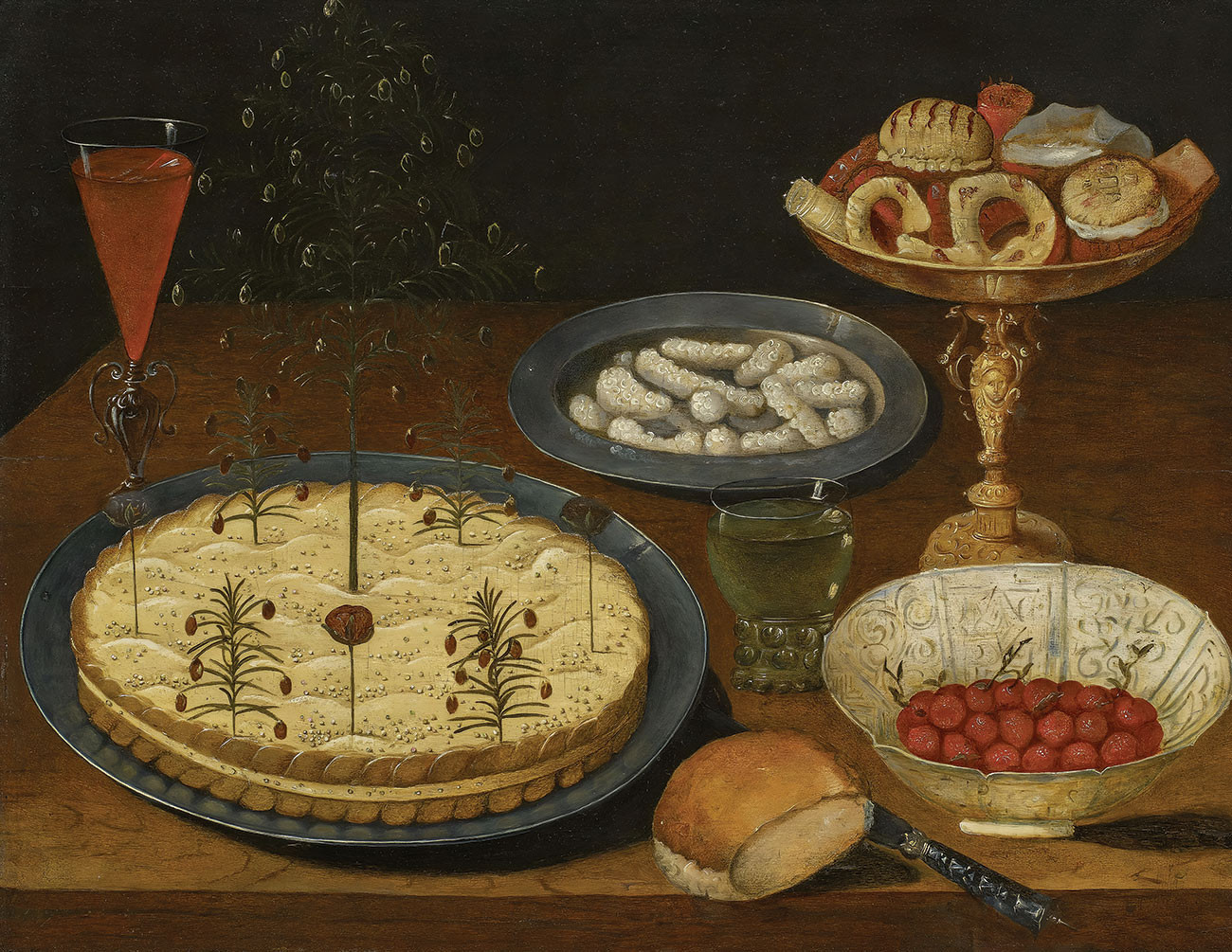 ₴ Репродукция натюрморт известного художника "Натюрморт с пирогом, миской клубники и позолоченной чашкой" - Берт Осиас
