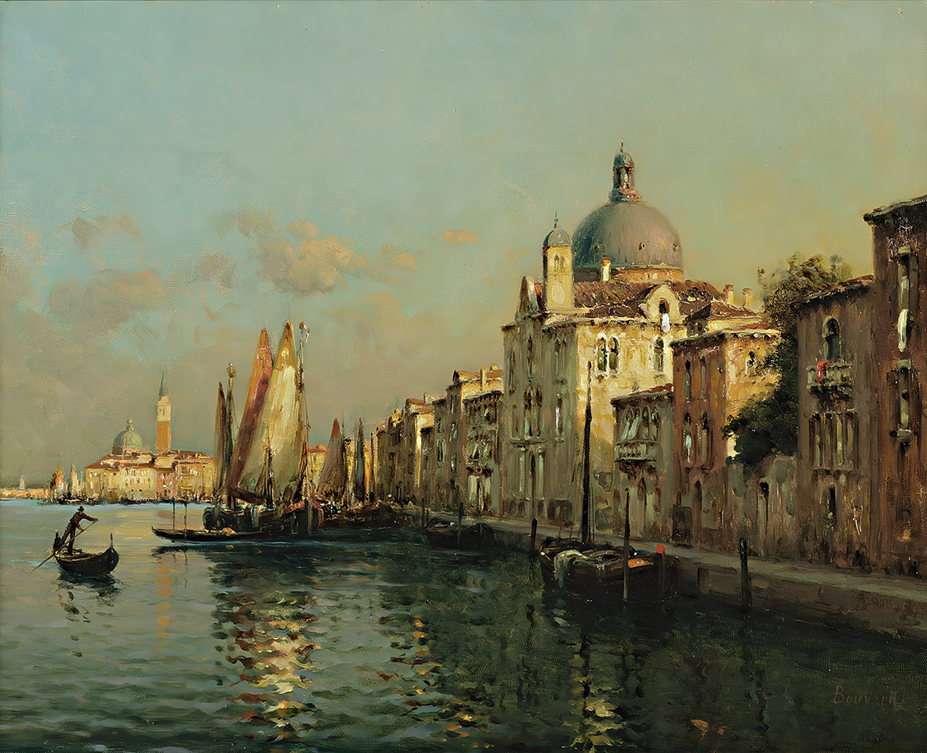 ₴ Репродукция городской пейзаж "Сцена на канале с видом на Скуола-Гранде-ди-Сан-Марко" - Бувар Огюст