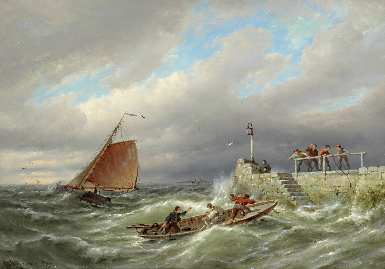 ⚓Репродукция морской пейзаж "Борселен на Шельде, Голландия" - Домерсен Питер Корнелис