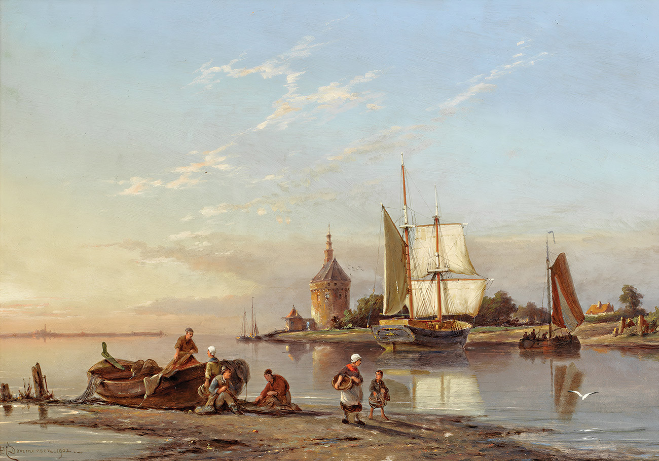 ⚓Репродукция морской пейзаж "Хорн на Зейдерзе, Голландия" - Домерсен Питер Корнелис