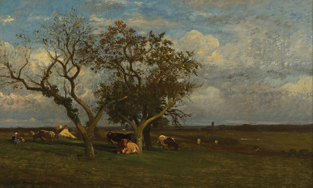 репродукция пейзажа художника Дюпре Жюля — "Пейзаж с коровами"
