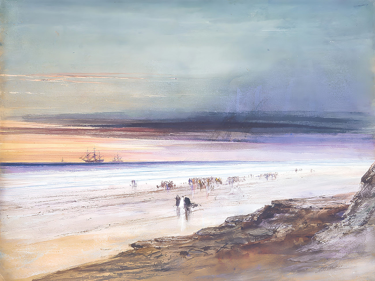 репродукция морского пейзажа художника Гамильтона Джеймса — "Сцена на пляже"