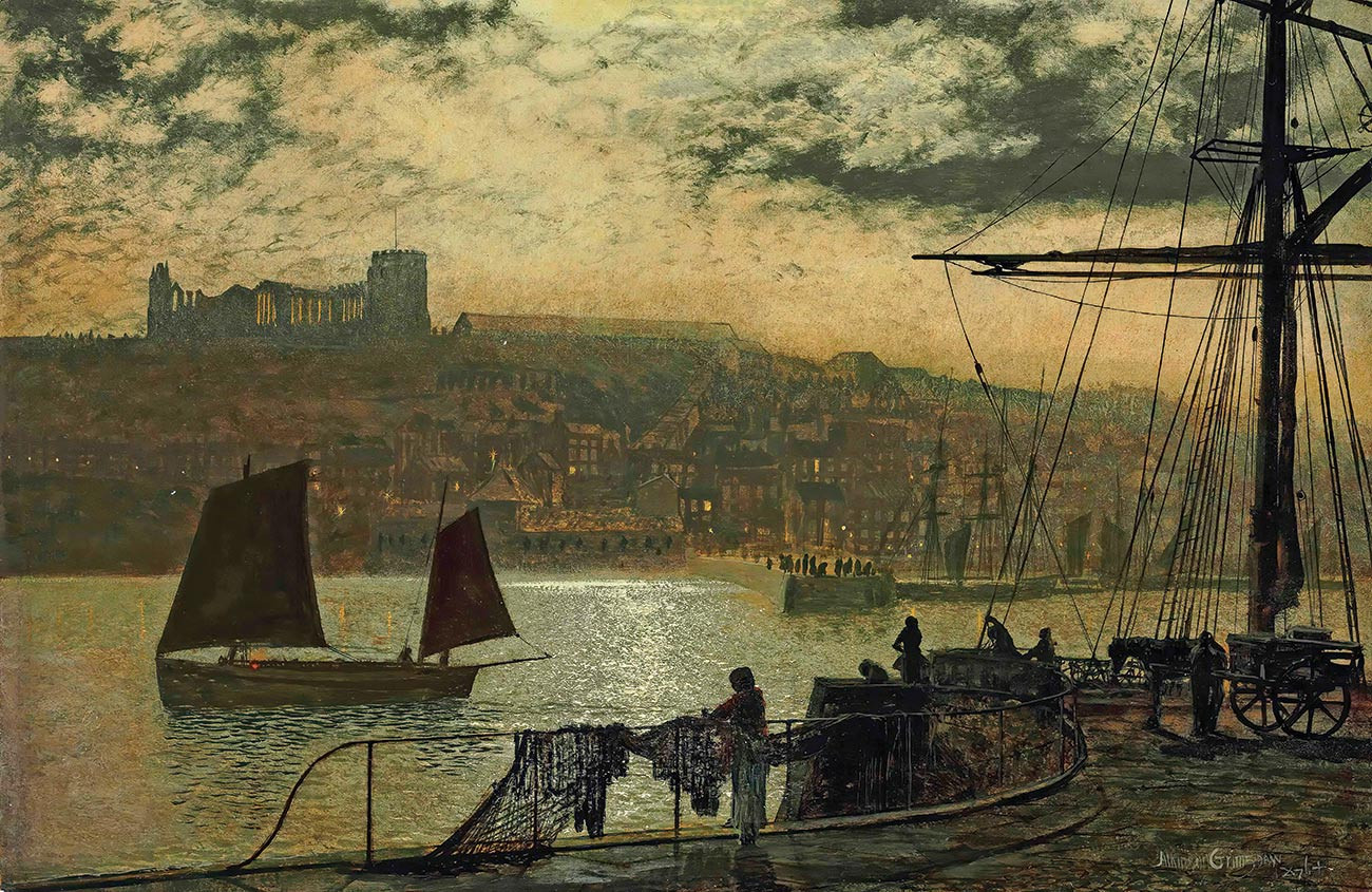 репродукция пейзажа художника Гримшоу Джона — "Аббатство и церковь Уитби"