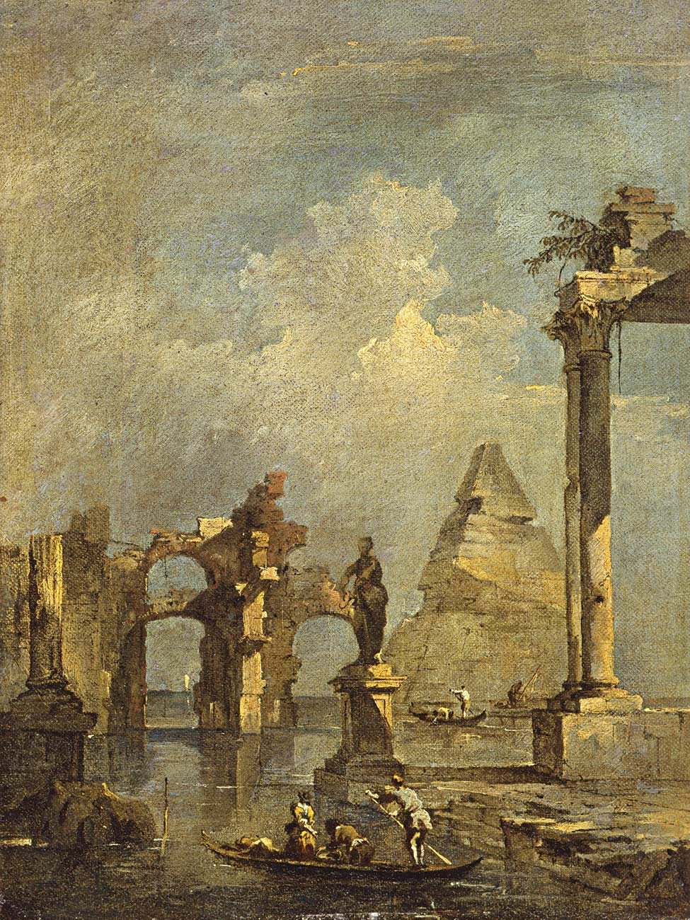 репродукция картины известного художника Гварди Франческо — "Архитектурная причуда с пирамидой и перемычкой"