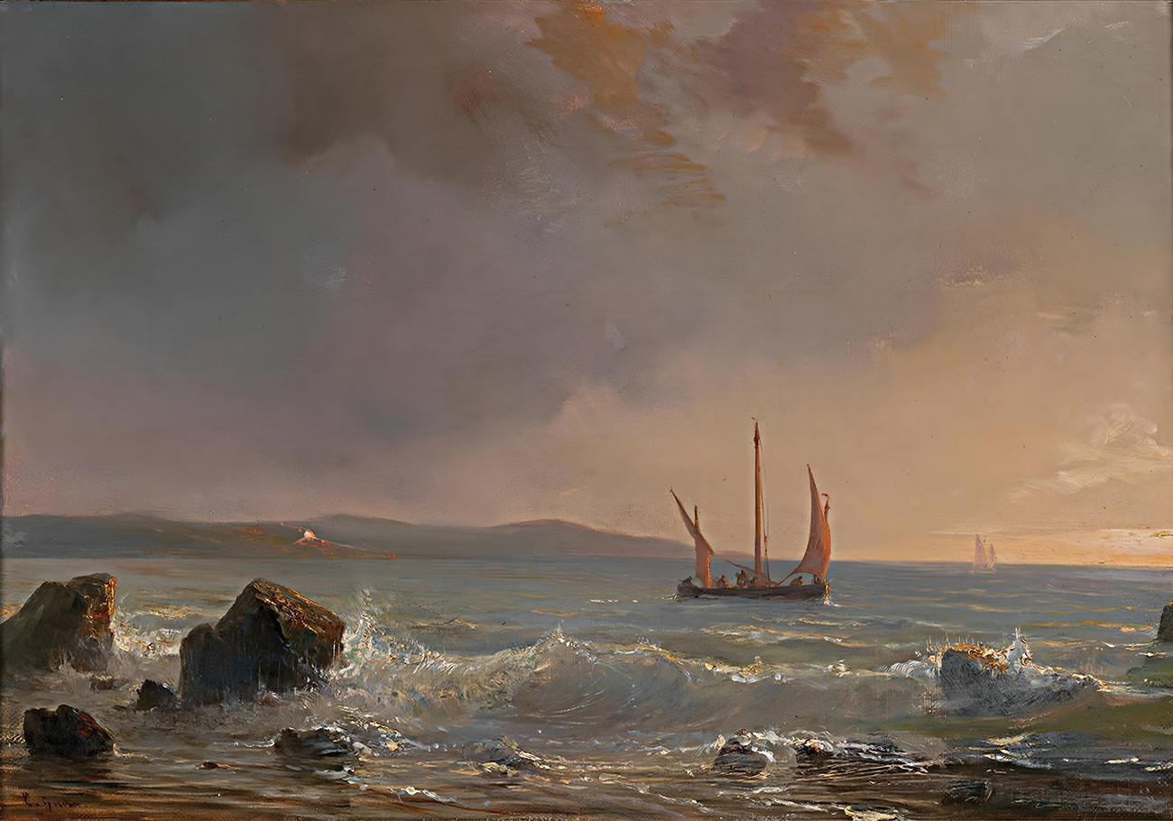 ⚓Репродукция морской пейзаж "Вечерняя атмосфера над морским пейзажем с парусниками" - Гюден Теодор Жан Антуан