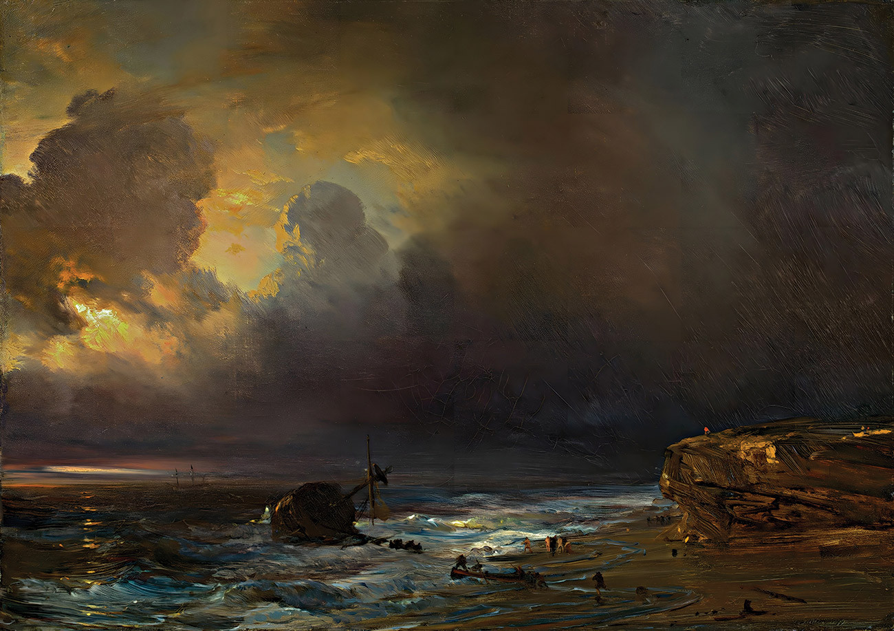 ⚓Репродукция морской пейзаж "Прибрежный пейзаж при лунном свете" - Гюден Теодор Жан Антуан
