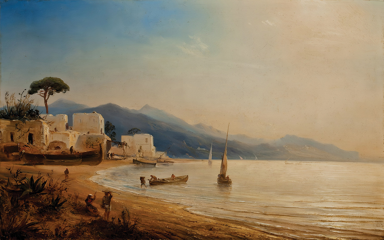 репродукция морского пейзажа художника Гюдена Теодора — "Побережье вблизи Неаполя"
