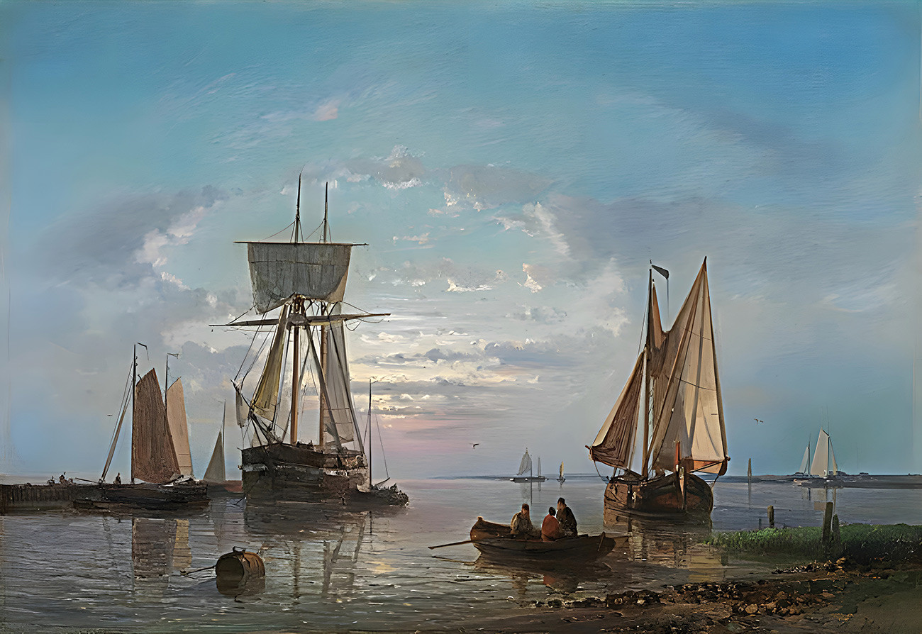 ⚓Репродукция морской пейзаж "Отлив На Шельде, закат" - Халк Авраам