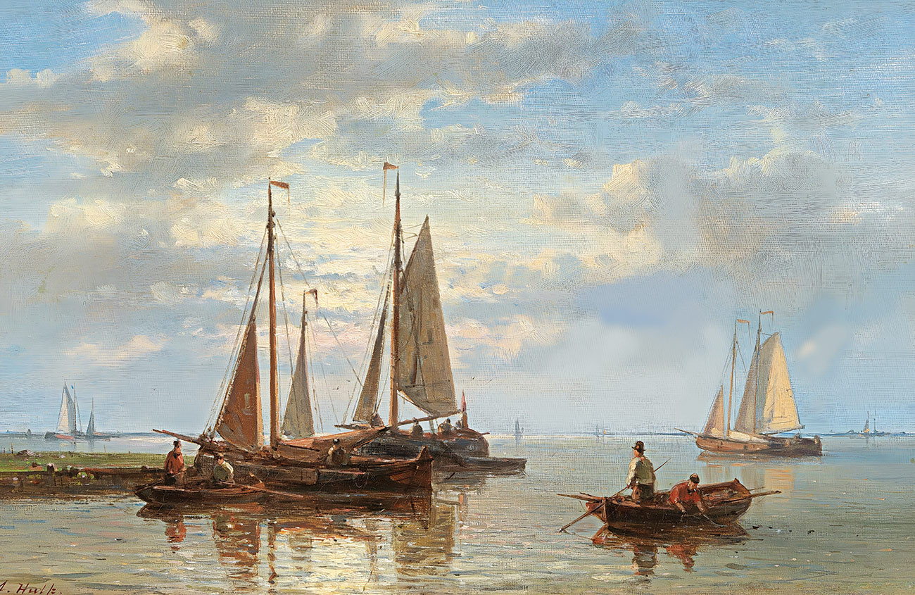 репродукция морского пейзажа художника Халка Авраама — "Парусные лодки на спокойном море"