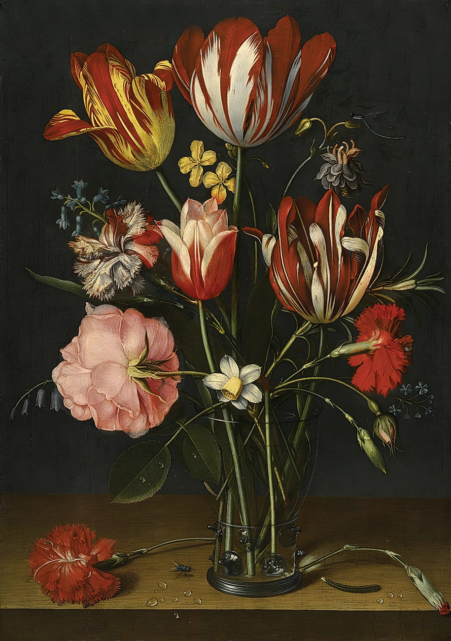 ₴ Репродукция цветочный натюрморт известного художника "Букет цветов в стеклянной вазе" - Халсдонк Якоб ван