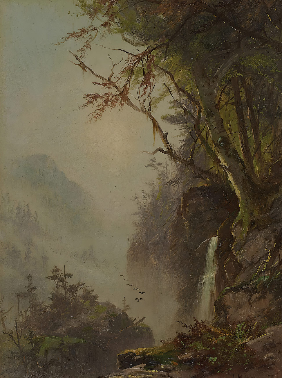 репродукция пейзажа художника Харта Джеймса — "Водопад в горах"
