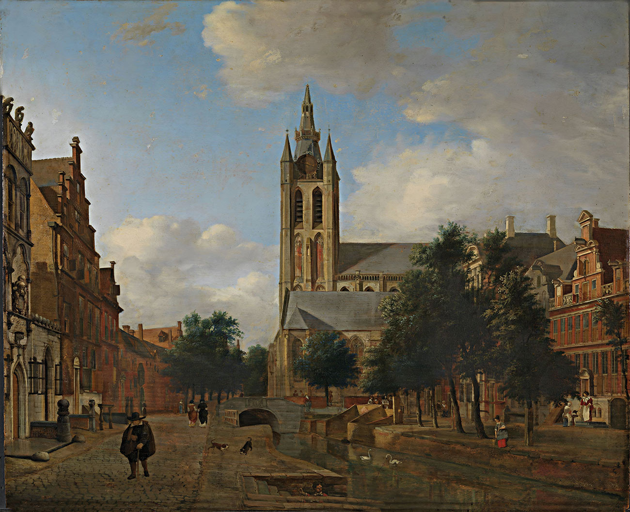₴ Репродукция городской пейзаж известного художника "Старый Делфтский канал и Старая церковь" - Хейден Ян ван дер