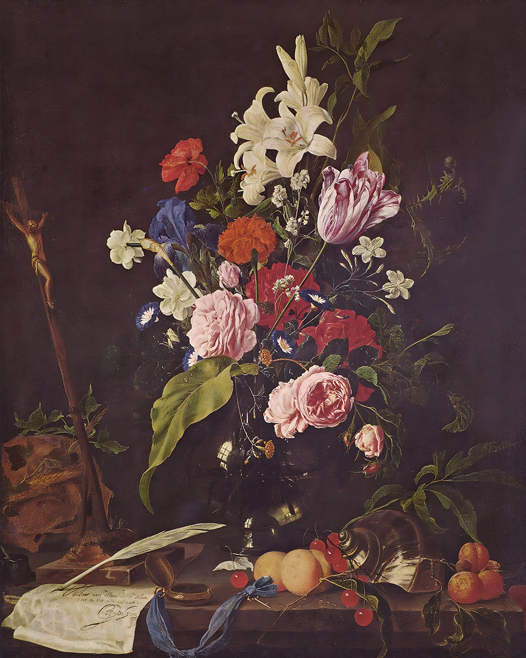 ₴ Репродукция цветочный натюрморт известного художника "Цветочный натюрморт с распятием и черепом" - Хем Ян Давидс де