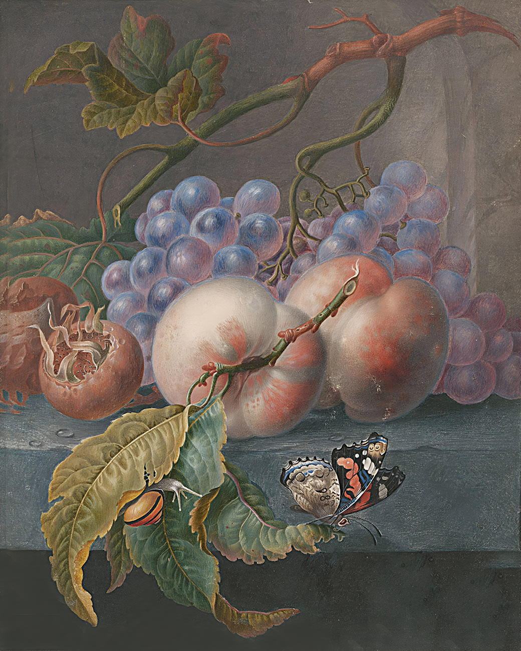 ₴ Репродукция натюрморт "Фрукты с бабочкой и улиткой" - Хенстенбург Генри