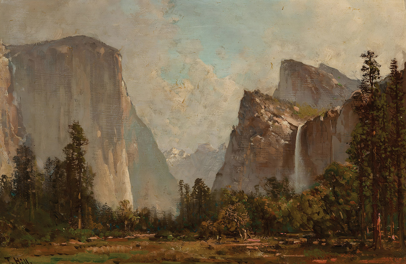 репродукция пейзажа художника Хилла Томаса — "Ворота Йосемити и водопад Фата невесты"