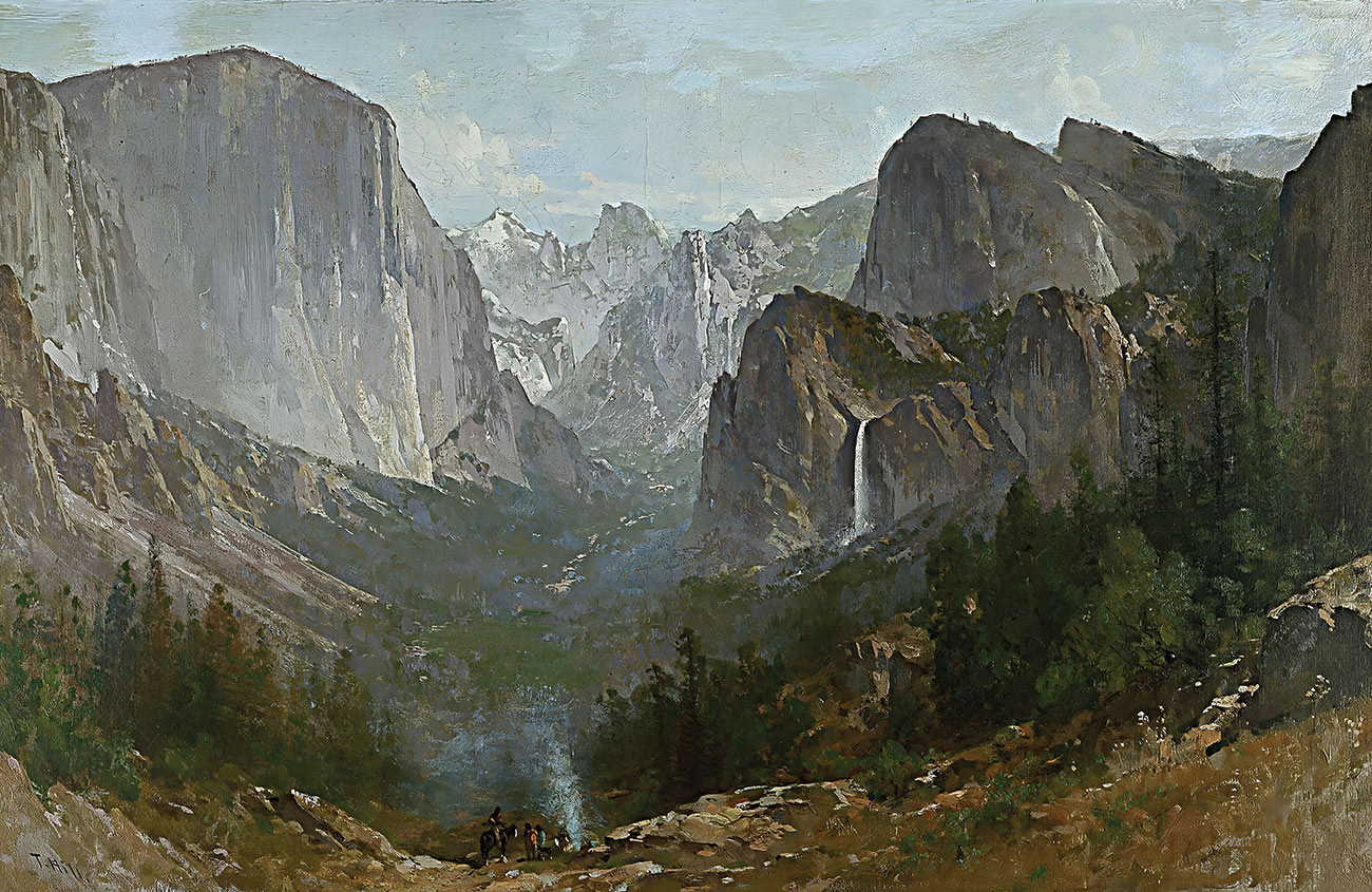 ₴ Репродукция пейзажа "Индейцы у костра, долина Йосемити" - Хилл Томас