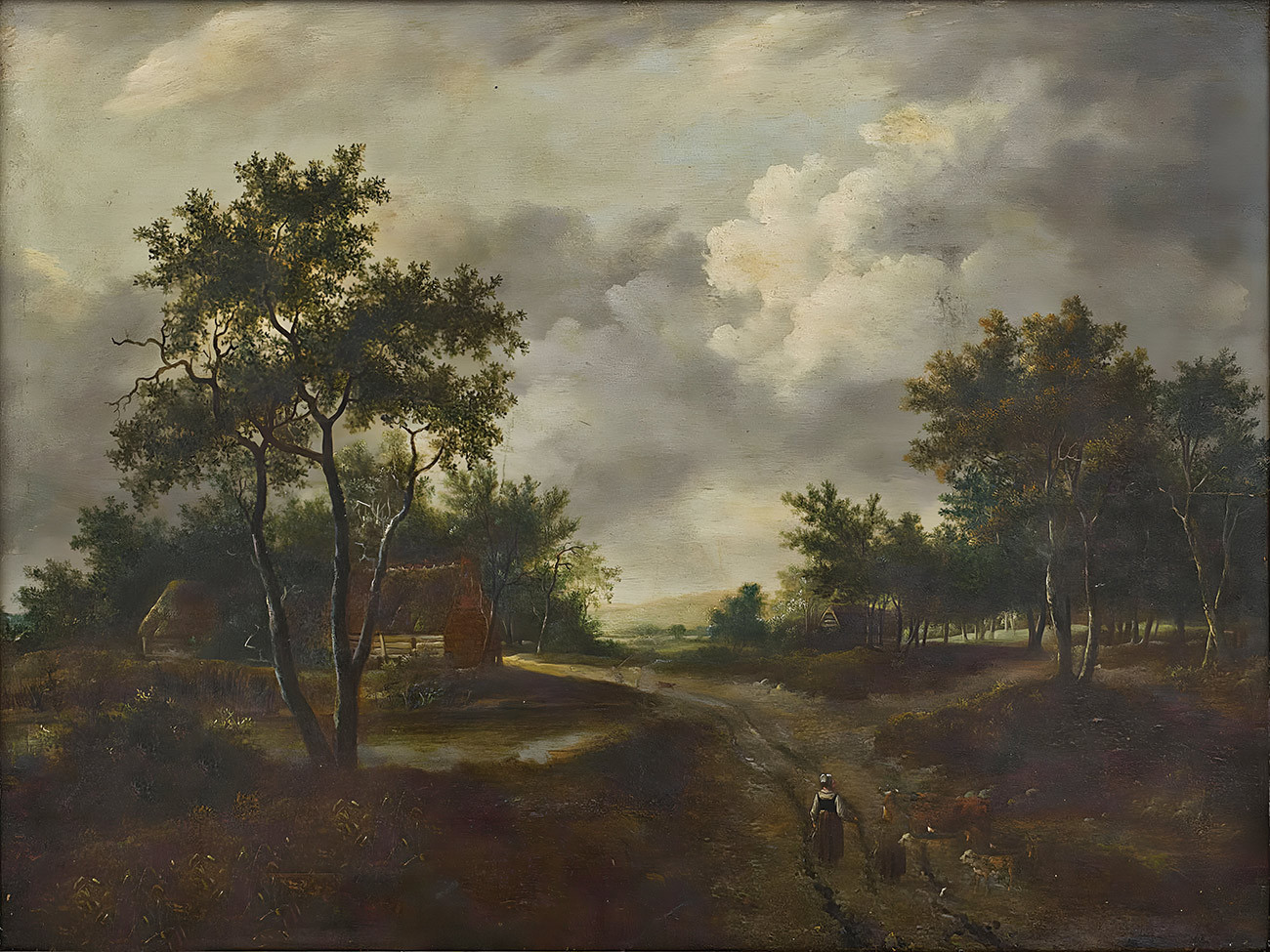 ₴ Репродукция пейзаж известного художника "Сельская дорога" - Хоббема Мейндерт