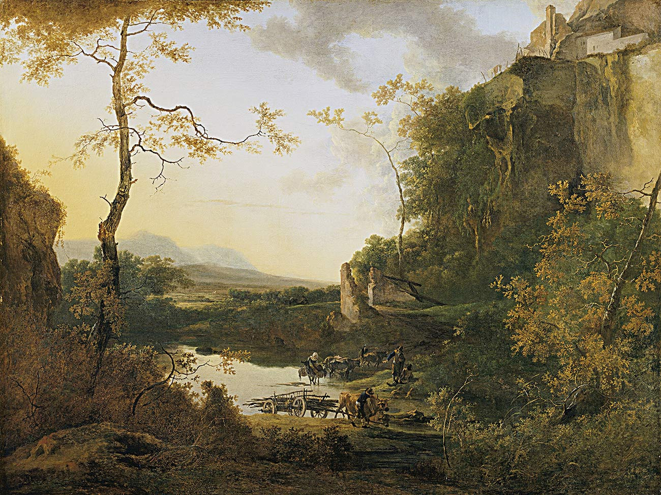 репродукция пейзажа художника Хойша Виллема — "Итальянский пейзаж с прудом"