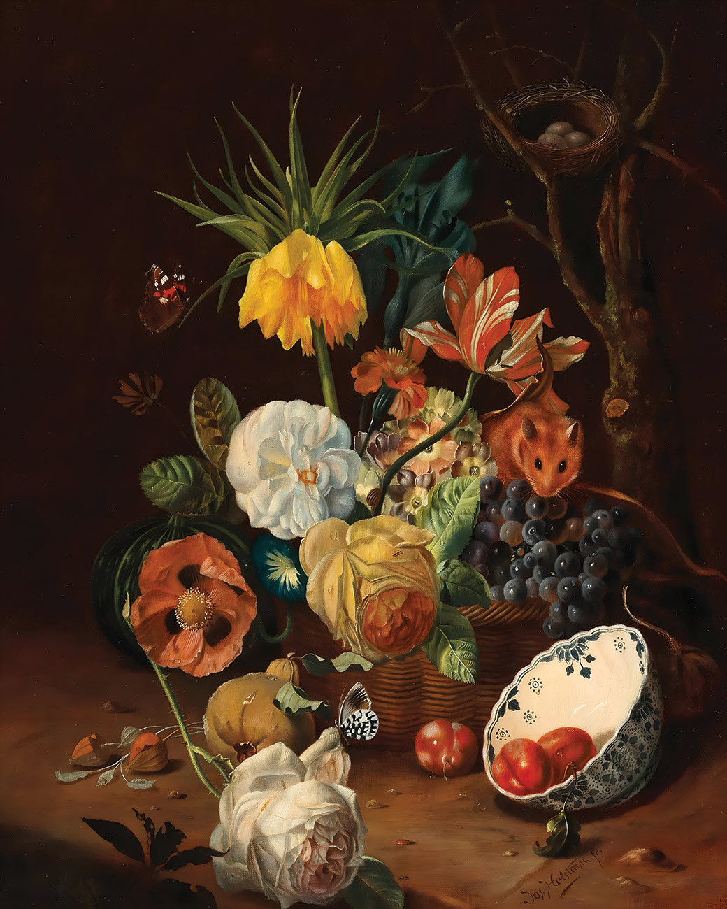 купите репродукцию цветочный натюрморт современного художника Хольстейна Йозефа — "Цветочный натюрморт с фруктами"