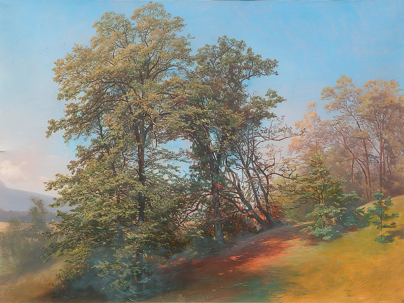 репродукция пейзажа художника Хольцера Жозефа — "Группа деревьев в Менхсберге в Зальцбурге"