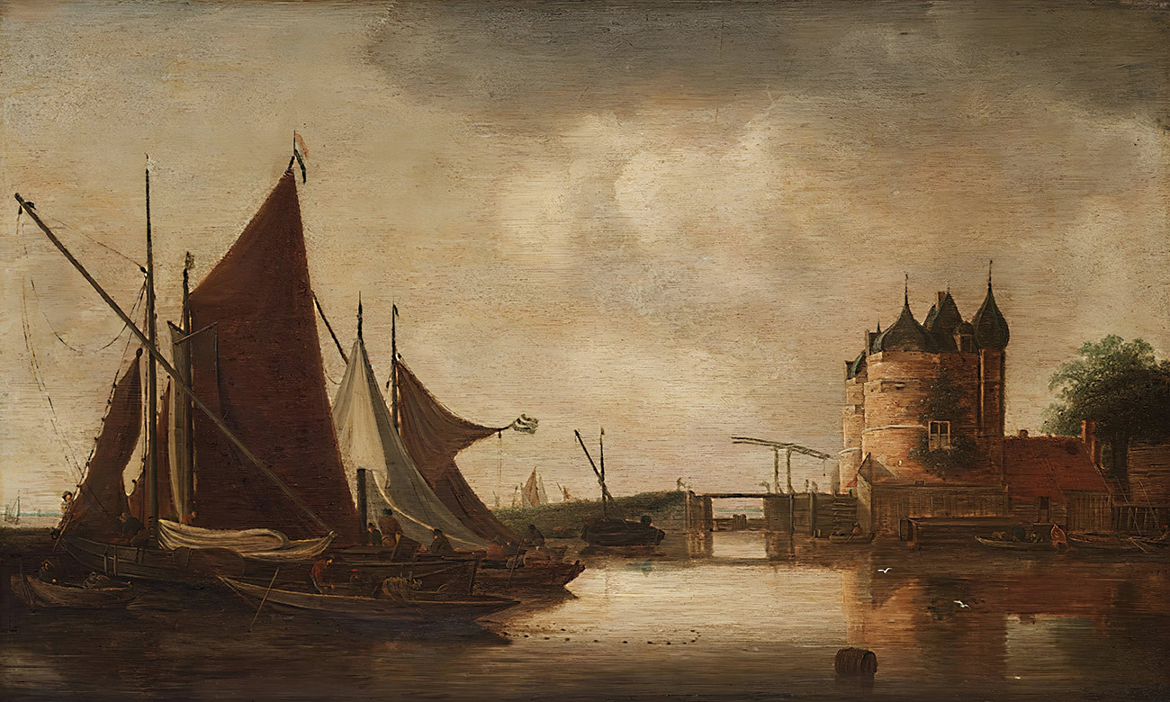 ₴ Репродукция пейзажа "Речной пейзаж с фортом на берегу" - Хульст Франс де