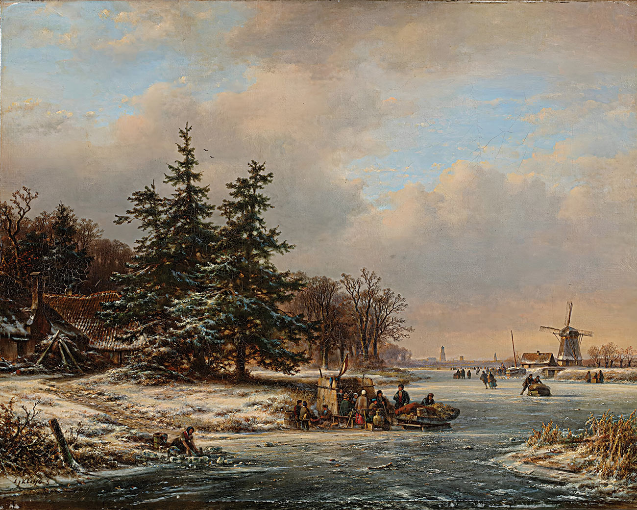 ₴ Репродукция пейзаж "Зимний пейзаж с фигуристами на льду возле катка, Утрехт на расстоянии" - Кляйн Лодевейк Йоханнес