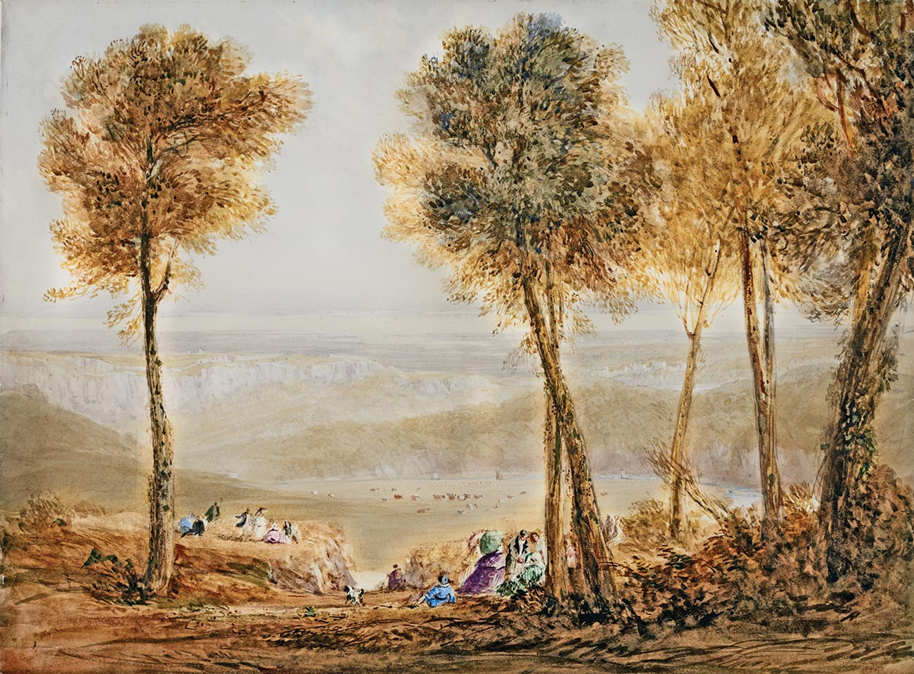 репродукция пейзажа художника Кокса Дэвида — "Обширный вид из Виндклиффа на устье Северна в сторону Англии"