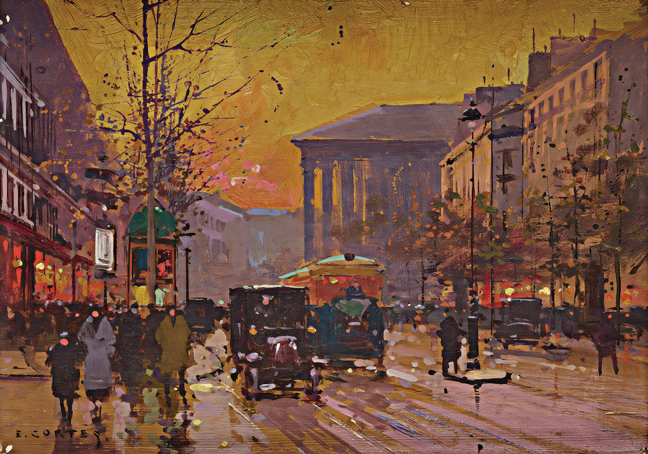 ₴ Репродукция городской пейзаж известного художника "Бульвар Мадлен, Париж" - Кортес Эдуард Леон