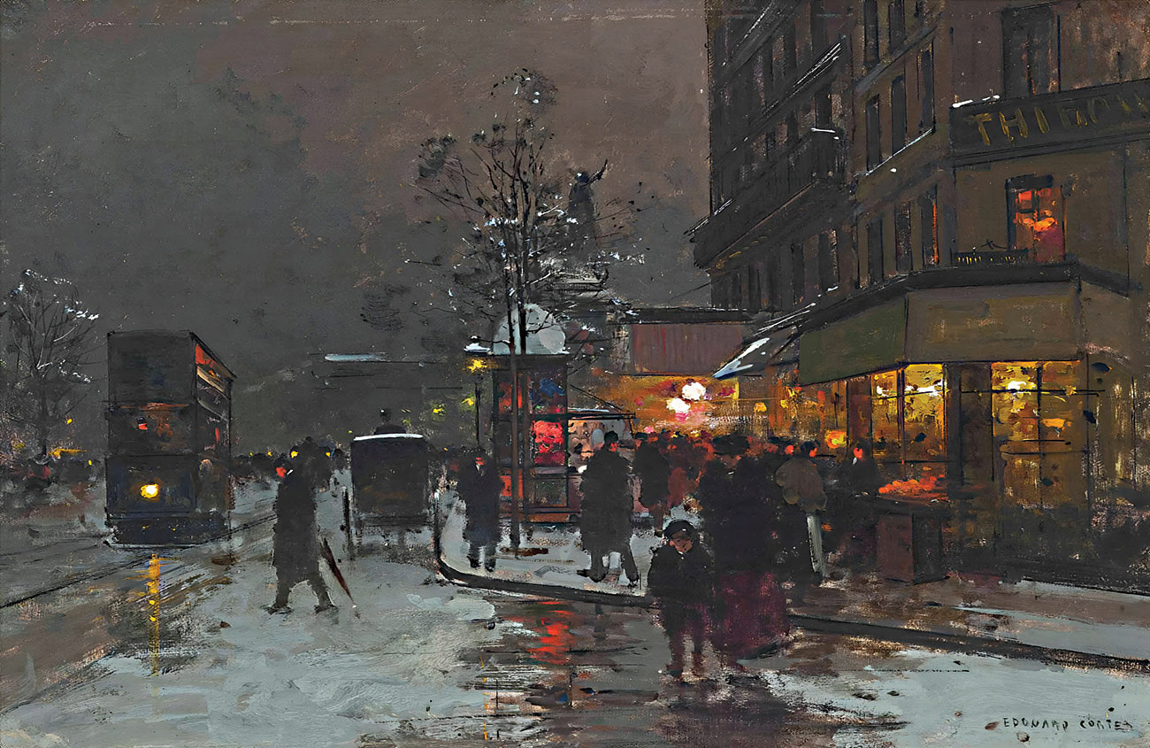От холста к реальности: репродукция картины "Снег возле площади Республики в Париже" известного художника Кортеса Эдуарда