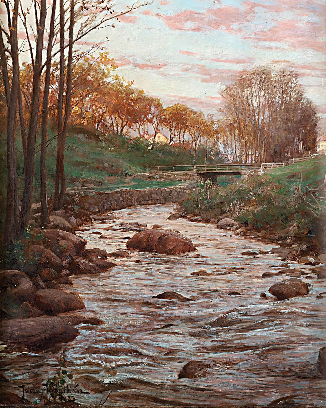 ₴ Репродукция пейзаж "Осенний пейзаж с мостом через ручей" - Кретен Йохан