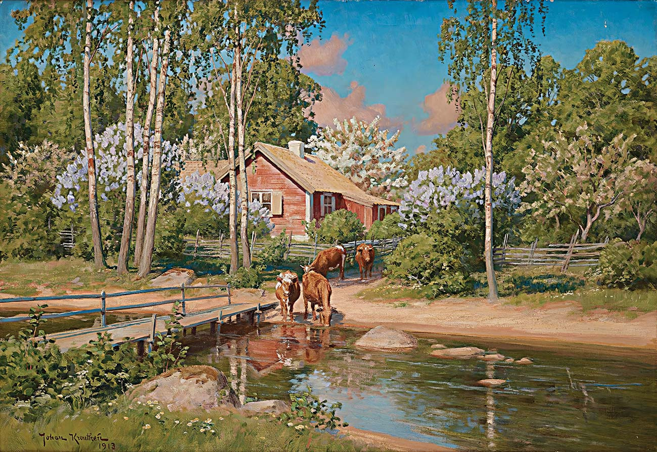 репродукция пейзажа художника Кретена Йохана — "Летний пейзаж с коровами"