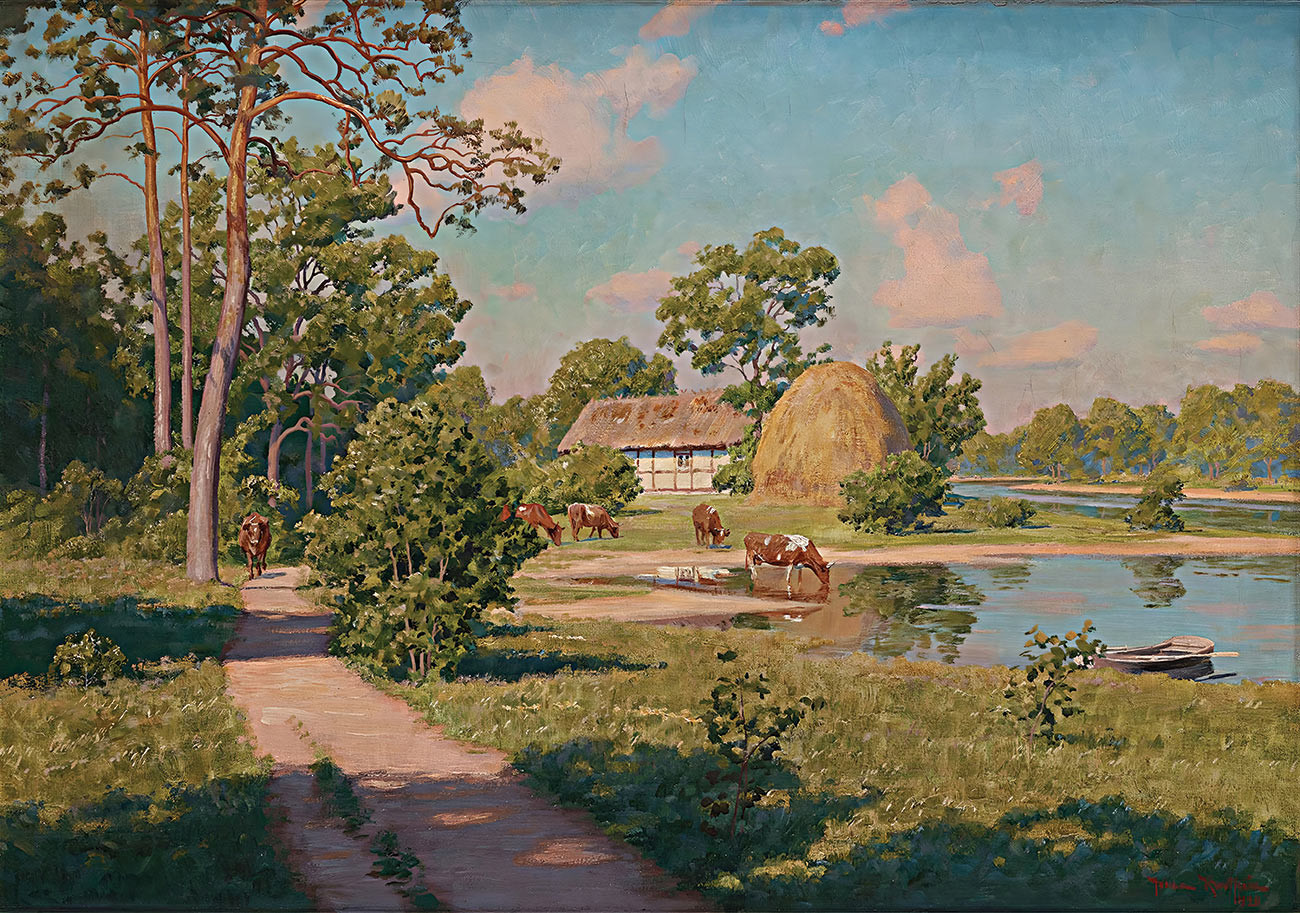 репродукция пейзажа художника Кретена Йохана — "Летний пейзаж с коровами"