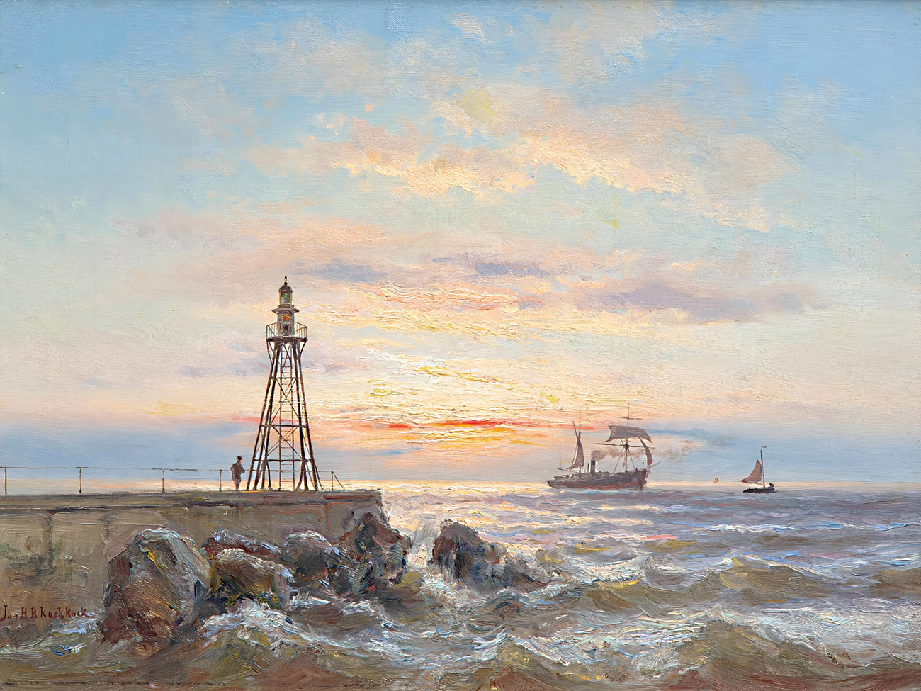 ⚓Репродукция морской пейзаж "Вид с пирса Эймейдена на закате" - Куккук Йоханнес Херманус Баренд