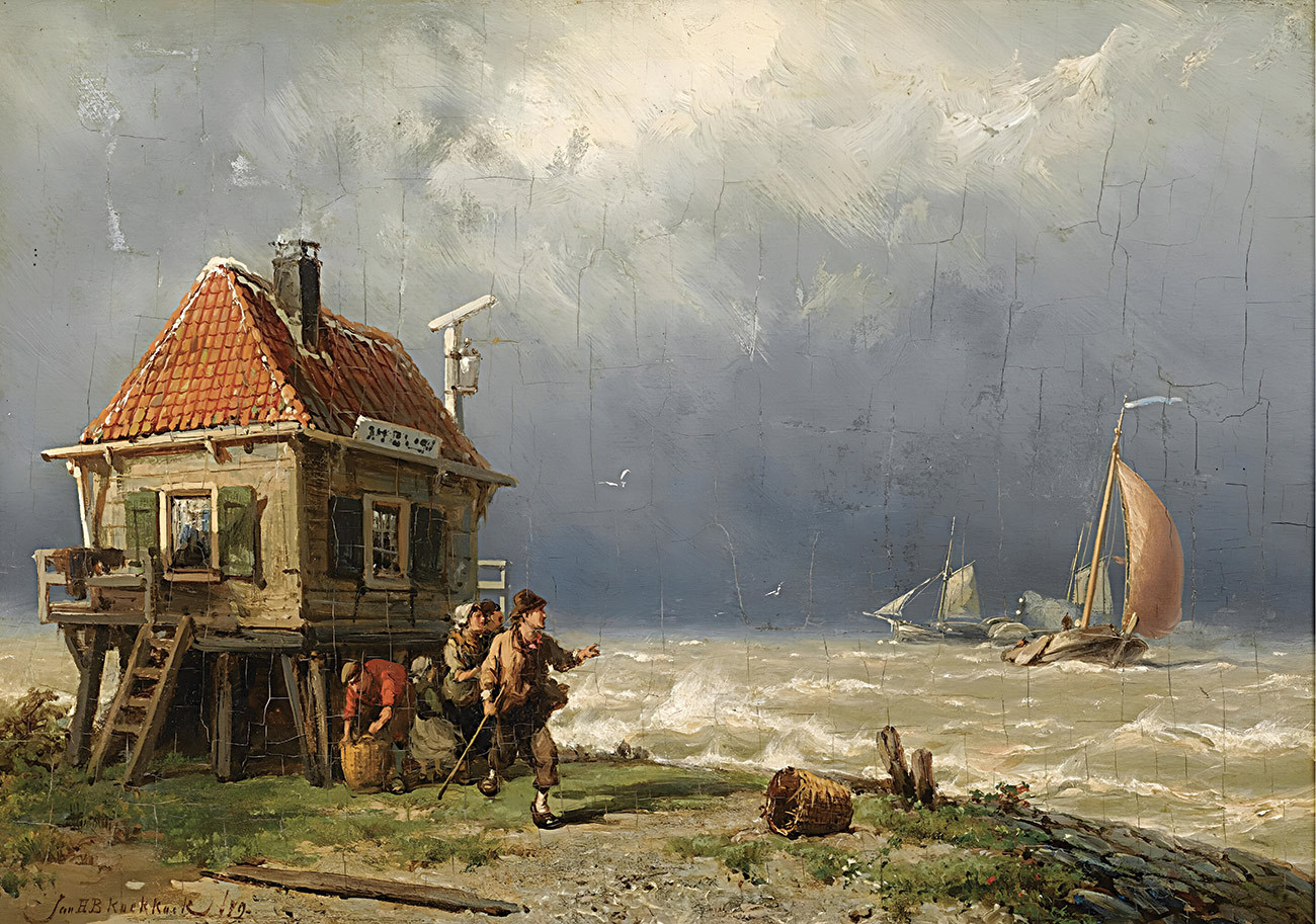 ⚓Репродукция морской пейзаж "Фигуры возле дома" - Куккук Йоханнес Херманус Баренд