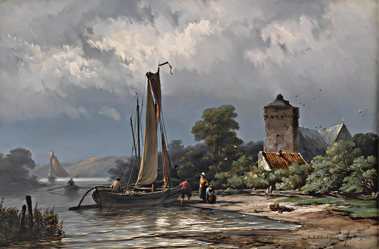 ⚓Репродукция морской пейзаж "Швартовка лодки" - Куккук Йоханнес Херманус Баренд