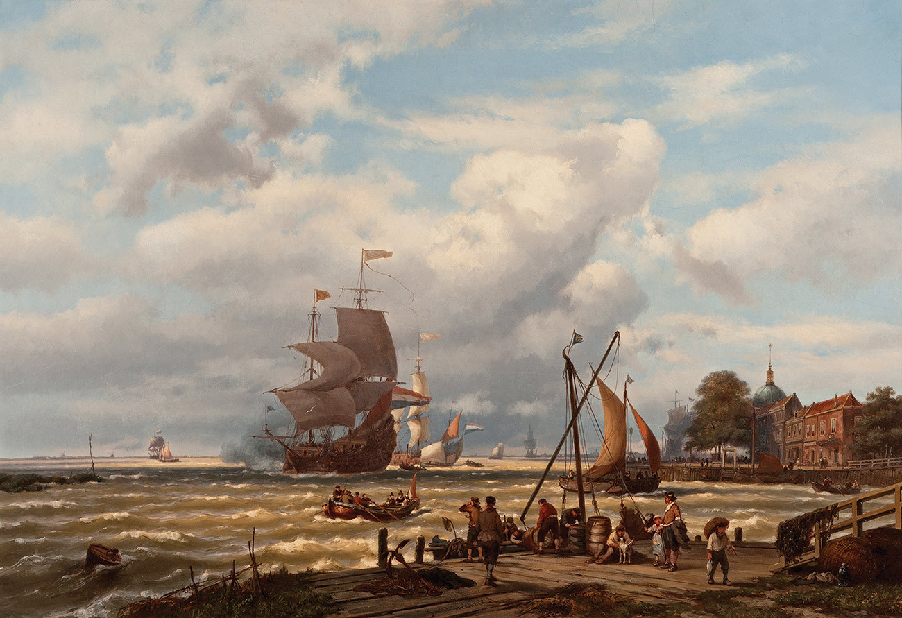 репродукция морского пейзажа известного художника Куккука Йоханнеса Хермануса — "Торговое судно на рейде Дордрехта"