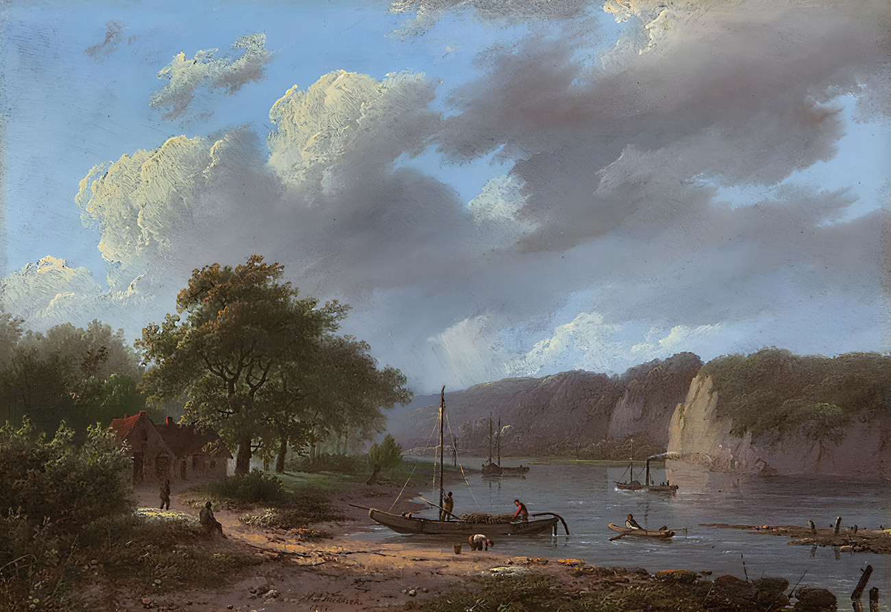 репродукция пейзажа художника Куккук Маринуса — "Рейнский пейзаж"