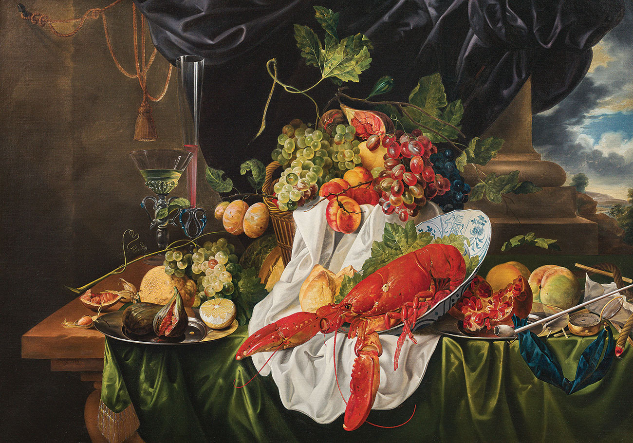 ₴ Репродукция натюрморт "Натюрморт с омаром и фруктами" - Кусс Фердинанд