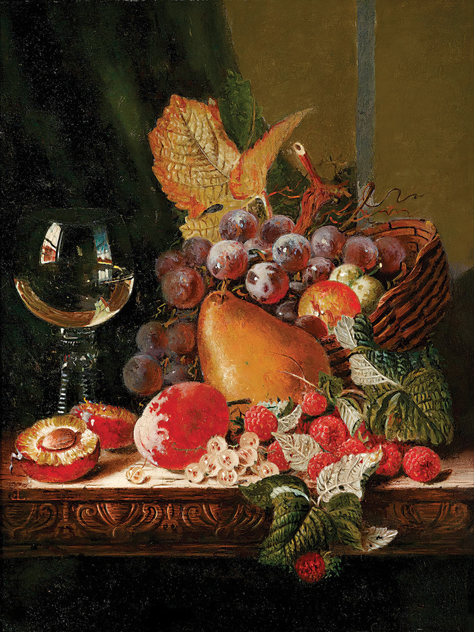 ₴ Репродукция натюрморт "Натюрморт с фруктами и бокалом вина" - Ладелл Эдвард