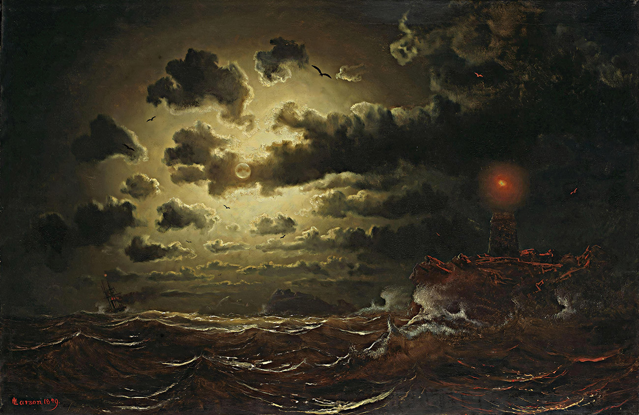 репродукция морского пейзажа известного художника Ларсона Маркуса — "Морской мотив из Христиании"