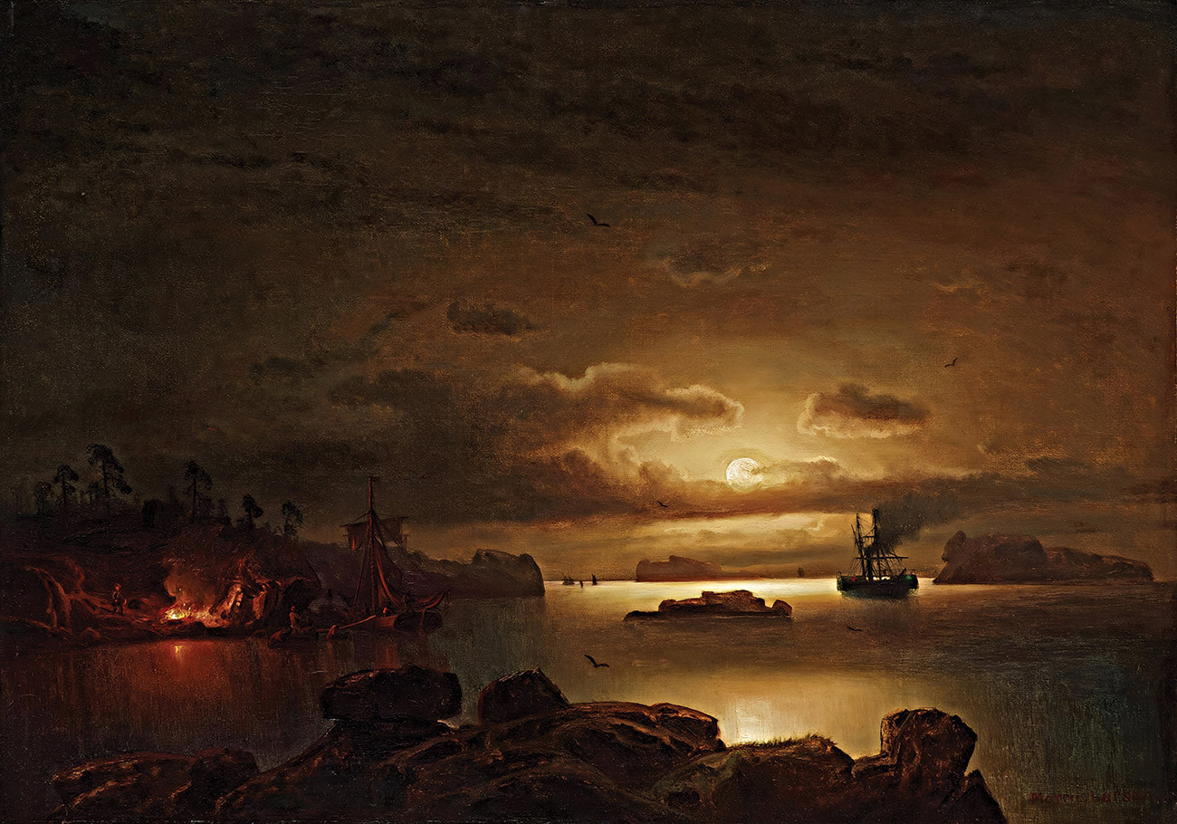 репродукция морского пейзажа известного художника Ларсона Маркуса — "Гавань контрабандистов"