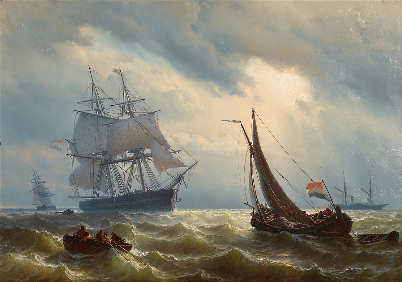 ⚓Репродукция морской пейзаж "Грузовые суда у побережья" - Мейер Луис