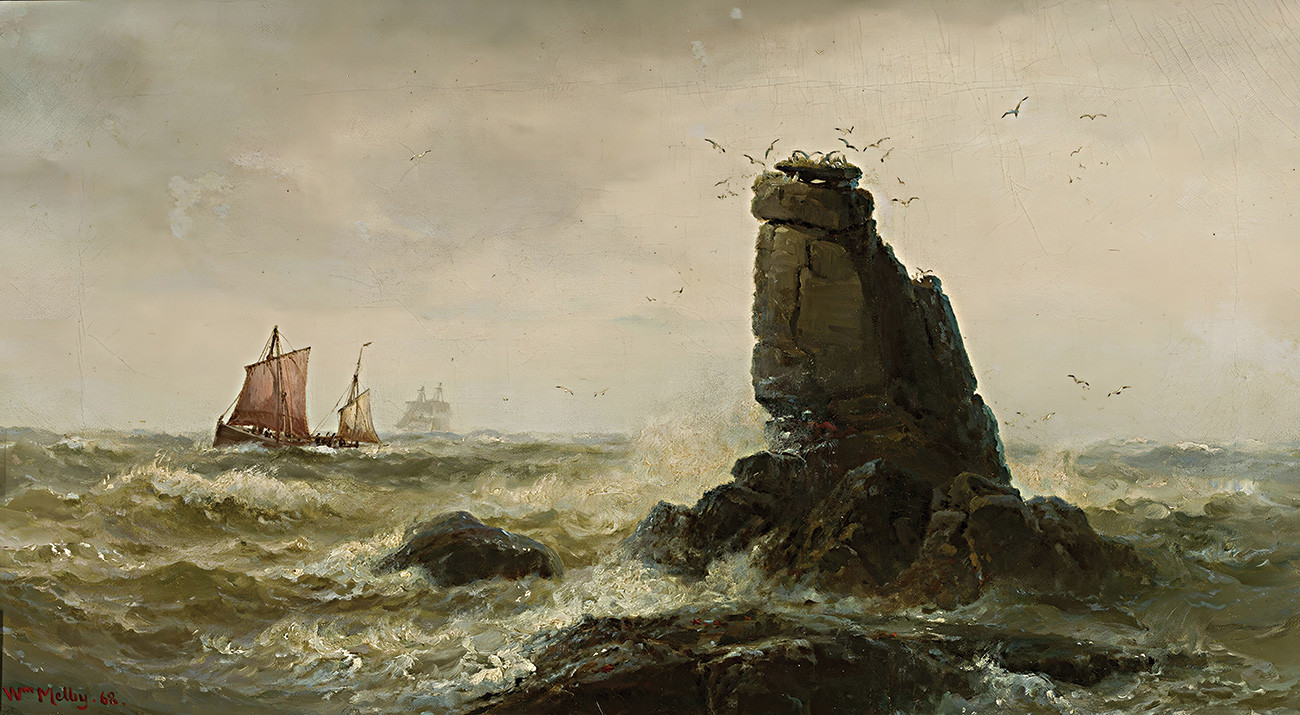 репродукция морского пейзажа художника Мельбе Вильгельма — "Морской пейзаж с парусниками"
