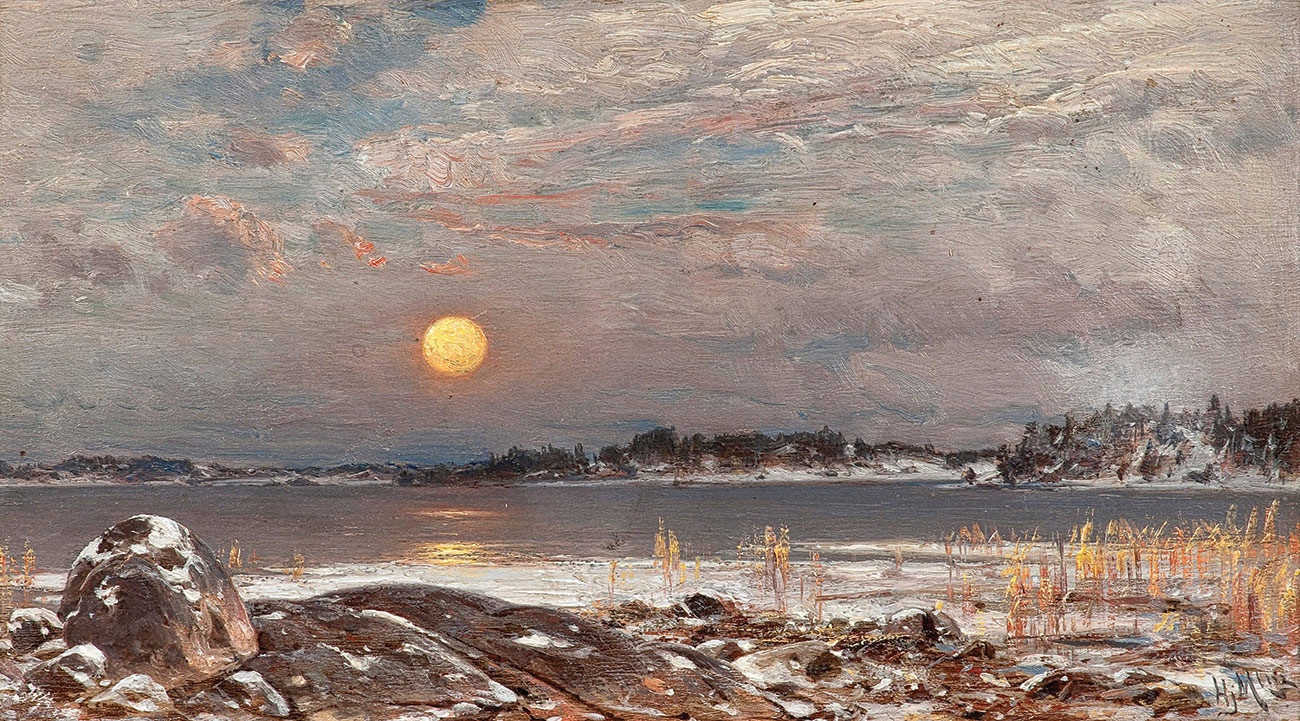 репродукция пейзажа художника Мунстеръелма Ялмара — "Рання весна, луна"